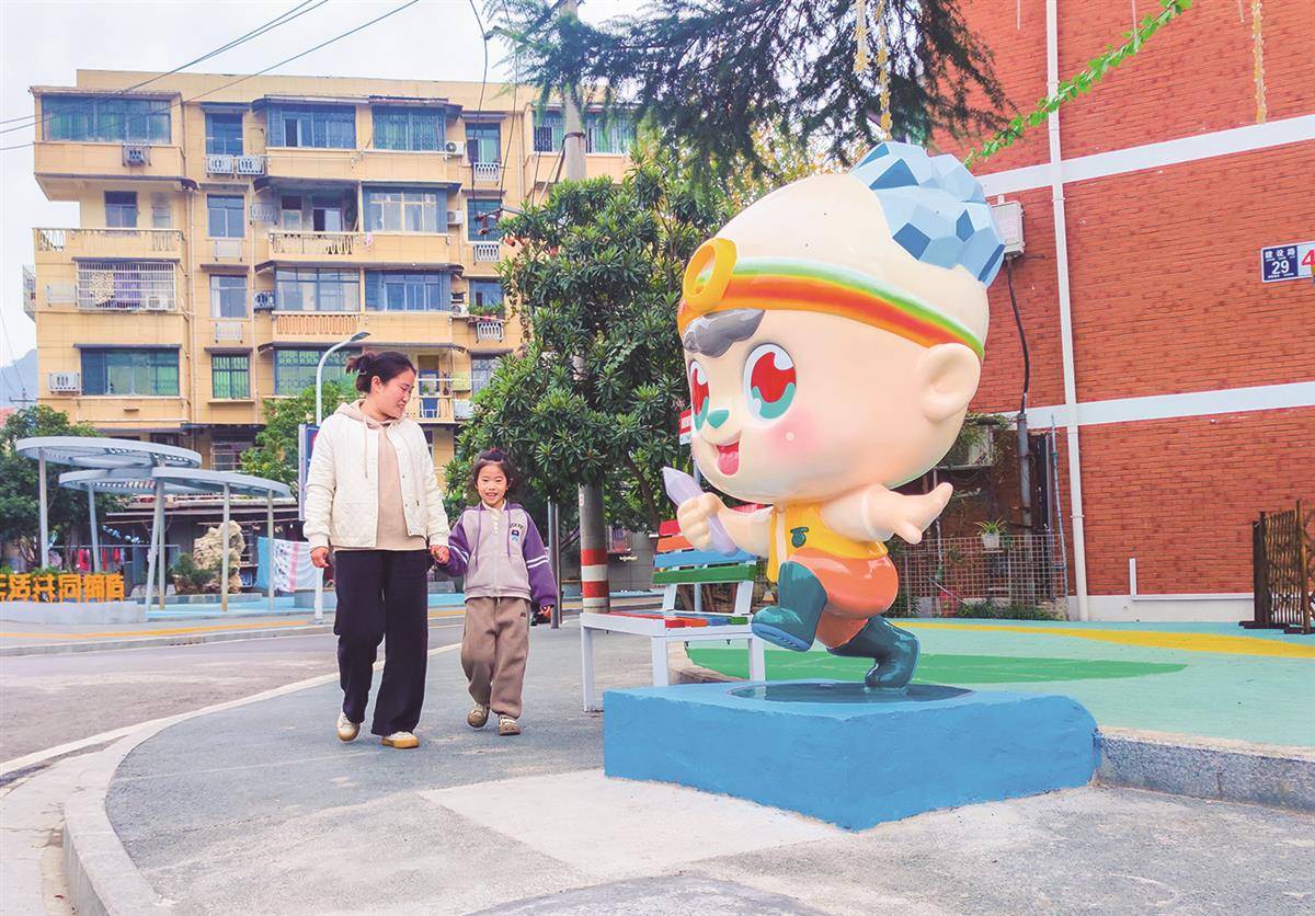 铁山街道矿山路社区居民在改造后的“黄小石”口袋公园散步。(湖北日报通讯员 周巍 摄)