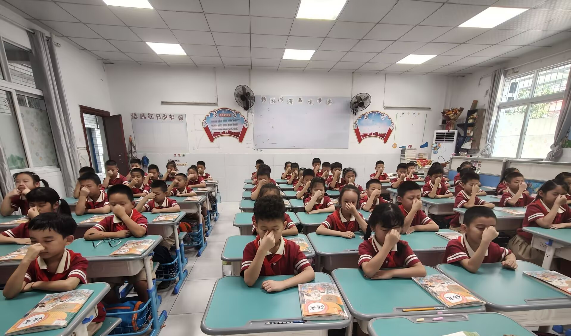 活动以“主题班会”拉开序幕。9月第一周,各班利用班会课开展专题教育:教师通过PPT、视频直观科普“远视储备量”的重要性与近视形成原因,细致讲解“一尺、一拳、一寸”读写标准和“20-20-20”用眼法则;“找椅子”蒙眼体验让学生切身感受视力缺失的不便,分组姿势纠正练习则在教师指导下强化正确习惯;学生们还围绕“如何保护眼睛”积极分享,班主任结合讨论总结护眼核心要点,现场配备的视力表、宣传海报进一步夯实认知基础。