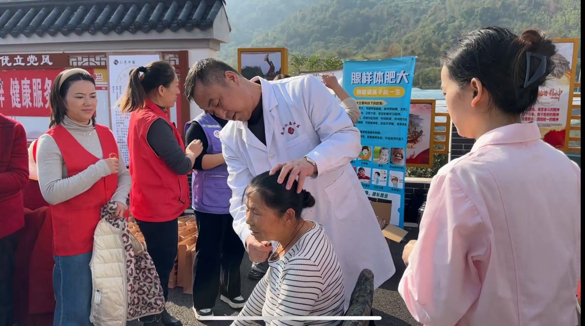 针对部分腿脚不便的老年人、残疾人,村干部与医护人员组成流动医疗队,上门开展中医问诊、量血压血糖、康复评估与居家康复指导,把中医关怀送到村民屋头和床前。