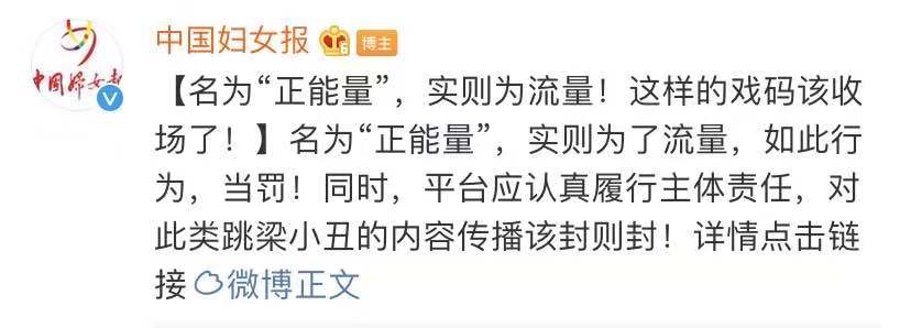 中国妇女报发表评论称名为“正能量”,实则为流量