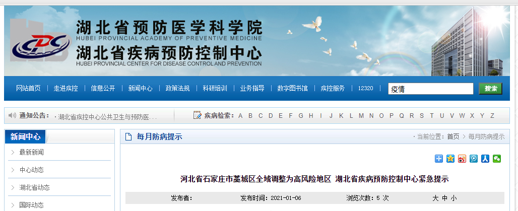 湖北省疾病预防控制中心紧急提示