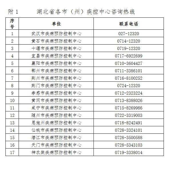 附1 湖北省各市(州)疾控中心咨询热线