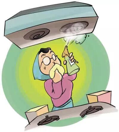 彻底将灶台、油烟机油垢清洗干净,防患未然。一旦油烟机着火,除了及时切断电源外,还须立即关闭排风机,否则风越大,火越旺。