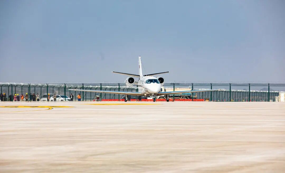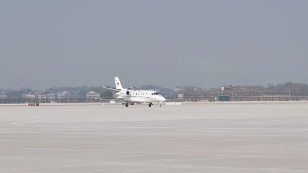 12月29日12点19分,这架尾翼上涂装着五星红旗的编号B-603S的“奖状”C560型校验飞机平稳地降落在鄂州花湖机场西跑道上,留下了深色的“脚印”。这是鄂州花湖机场史上第一道飞机轮胎印记,标志着鄂州花湖机场即将启动校飞。
