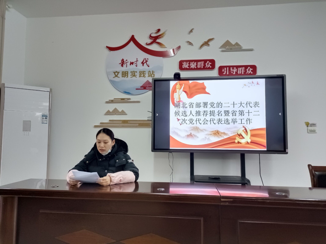 在专题学习中,澜湖社区党委直属四支部党员肖盼盼同志领学了习近平总书记二〇二二年新年贺词,传达了《中共中央发出通知部署党的二十大代表选举工作》文件精神;紧接着,澜湖社区李顺同志领学了《中央组织部负责人就党的二十大代表选举工作答新华社记者问》;随后,澜湖社区祝美玲同志领学了《高质量做好党的二十大代表选举工作(人民日报评论)》及《湖北省部署党的二十大代表候选人推荐提名暨省第十二次党代会代表选举工作》文件精神。