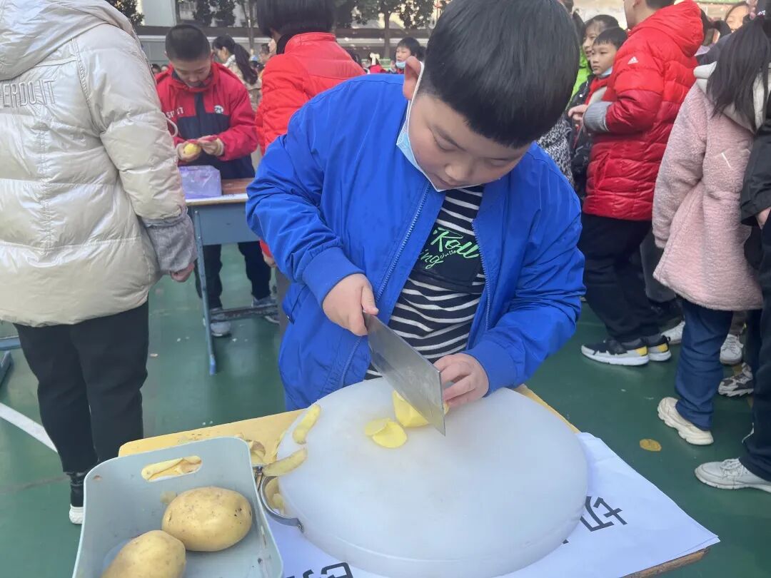 低年级为穿衣服、扣扣子、系红领巾和剥鸡蛋,中年级为解红领巾、脱衣服解扣子、叠红领巾叠衣服和刨苹果,而高年级的比赛就更富有挑战性了,穿鞋带系鞋带,叠三节伸缩伞,最后要完成刨土豆切土豆这一艰巨任务。劳动是汗水,是坚持,是历练,是给予,是幸福,让队员们在劳动中开启智慧,掌握技能,提高能力。