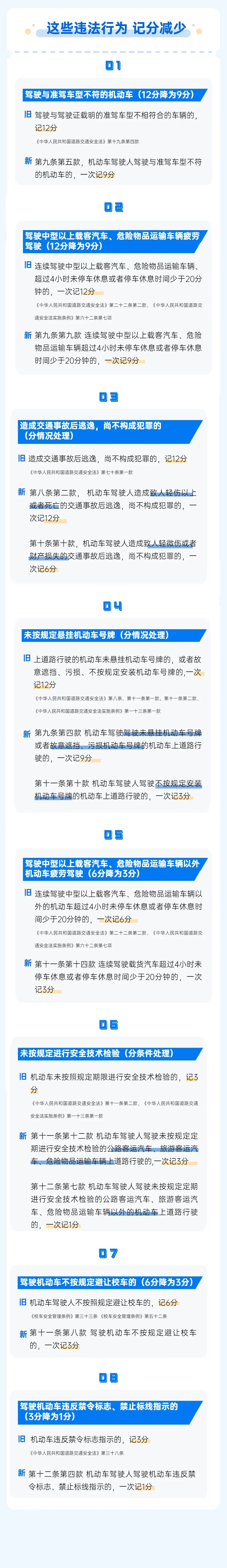 对比新旧《办法》根据交通违法行为的严重程度新增了一次记9分的违法消除了一次记2分的违法记分分值为12分、9分、6分、3分、1分共5档希望大家都学习起来