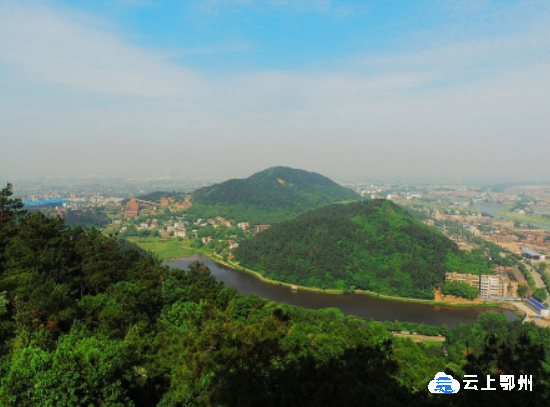 樊山之名,始于上古陶唐时期,距今有4000多年的历史。宋罗泌《路史·国名纪》载:“帝尧时有樊仲文,今武昌有樊山。”其中的意思简单来说,唐尧时期樊仲文为樊国君,后来樊国在春秋中晚期为楚所灭,樊人被楚国强迫南迁至今湖北鄂州城西的山边,樊山之名因此而来。再后来这里为楚王封邑。相对于西楚、荆楚,这里被称为东楚、樊楚。樊山为幕阜山一支经铁山、白雉山、葛山一路北行而来,至樊湖和长江交汇之处戛然而止。樊山东面、南面坡岗徐缓,西边、北边山势挺拔。樊山九峰,东起郎亭,西抵雷山,山峦叠嶂,起伏多姿。东面最高的石门峰167米,与西边最高的雷山(161米)双峰耸立,其态巍然。山间溪泉,汇于退谷抔湖,向北通江。长江上眺望,“樊山八字形常在”。樊山西南有樊湖,清初开始称梁子湖。马征麟《长江图说》记述:“上自江汉合流,下至彭蠡相汇,凡五百余里长江汇泽,其湖之最巨而著者曰梁子。”樊湖发源于鄂东南幕阜山脉,集鄂东南“七县一州”3200多平方公里径流,“汇江水渚为巨浸”,成数百平方公里名湖大泽。樊湖唯一的通江河道称樊港,“汇湖泽以百计,周数百里皆以武昌樊山一口为吐纳”。樊港通江口为樊口,位于樊山北面退谷抔湖通江处。“江从樊口转,山自武昌连”。樊山还有袁山、来山、樊冈、寿昌山等多个名字。鄂州历史上有“西山锁樊口之险,凤台塞石盘之流”的说法,发生过很多有关樊山樊水的趣闻故事。《水经注》引武昌记曰:“樊山,孙权常猎于下,见一姥,问猎得何物?答曰只猎得一豹。姥曰,何不竖豹尾?言讫忽然不见。权于后立庙祀之。”孙权后来在樊山建樊姥庙,铸豹尾鼎,被传为佳话。还有《搜神记》中记述的《樊山火》:“樊口之东有樊山,若天旱,以火烧山,即至大雨,今往往有验。”因此,宋代苏东坡在《樊山记》中云:“樊山或曰燔山,岁旱燔之,起龙至雨;或曰:樊氏居之,不知孰是?”意思是此山经常“燔(烧)山求雨”,燔是樊的谐音,由燔山演变为樊山,再或者是因樊姓居此地而得名。最后,苏大学士干脆“不知孰是”,来了个有问无答,不置可否。
