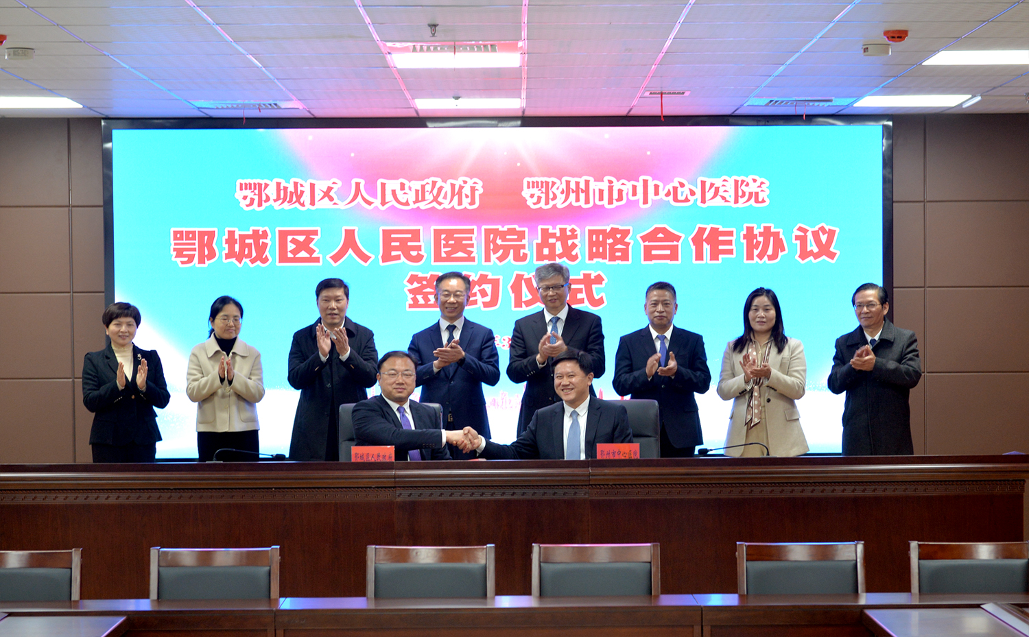 阳春三月,万物复苏,吴都大地一片生机勃勃。3月23日上午,鄂州市中心医院与鄂城区政府签订战略合作协议,托管鄂城区人民医院,共同推进鄂州市分级诊疗工作。鄂城区委区政府、各局领导及鄂州市中心医院部分班子成员、相关职能部门出席签字仪式。鄂城区区委书记董国平、中心医院党委书记刘黎明分别致辞,鄂城区区长夏鑫、中心医院党委副书记、院长喻军华签订协议。