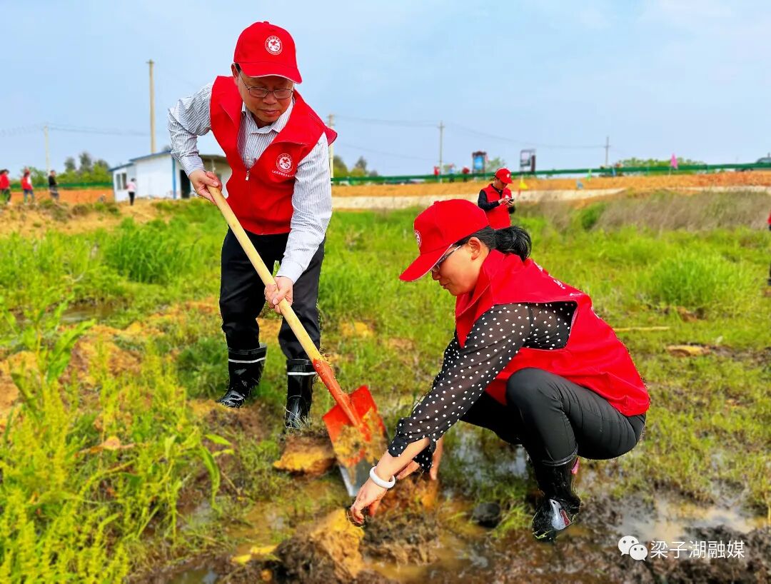 揭牌仪式后,志愿者又开展了种植莲藕志愿服务活动,弯腰、挖泥、埋种,将一棵棵莲藕种栽在湖滩上。本次种植莲藕志愿服务活动,由民进鄂州市委会捐赠藕种10000支,民进梁子湖支部捐赠藕种2000支,共计生态修复水面60亩。