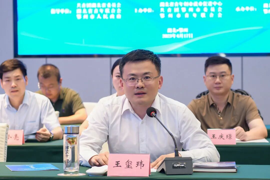 王玺玮代表市委、市政府对周森锋与51名省、市青企协会员一行到来表示诚挚的欢迎。他指出,鄂州既是武汉都市圈协同发展示范区,又是武汉新城的主战场。周森锋率湖北省青年企业家一行来我市考察投资环境和青年创业环境,紧紧围绕省委中心工作,武汉新城和以武鄂黄黄为核心的武汉都市圈总战略,凝聚青年力量,建设武汉新城,体现了团省委政治站位高,团结带领广大青年为湖北加快建设全国构建新发展格局先行区,奋力谱写全面建设社会主义现代化国家荆楚篇章贡献青春力量。希望八方英才鼎力相助,共商发展新机遇。