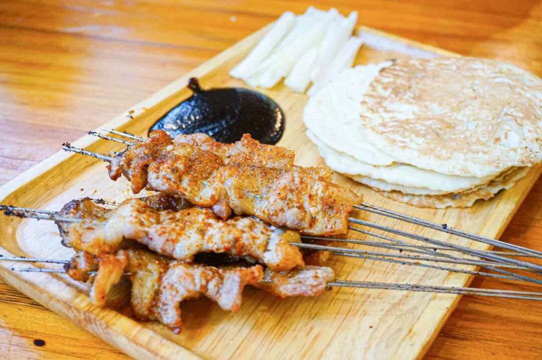 多数地区的烧烤都只是简单的撸串,而淄博烧烤却不同,会搭配小圆饼,将肉串、大葱、甜面酱等卷在里面吃。小饼麦香十足、肉串焦香浓郁、小葱辛辣刺激,这才是完整的淄博烧烤,味道不一般。
