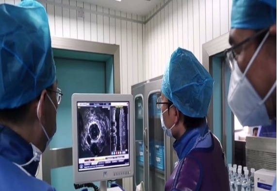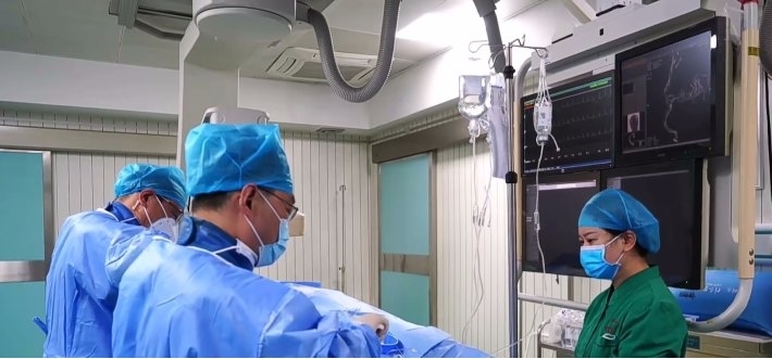 时针指向19点整,鄂州市中心医院介入室内,气氛略显紧张。心内科主任医师徐广、冯秀元带领着介入团队进行着今日的第17位患者的心脏介入手术。