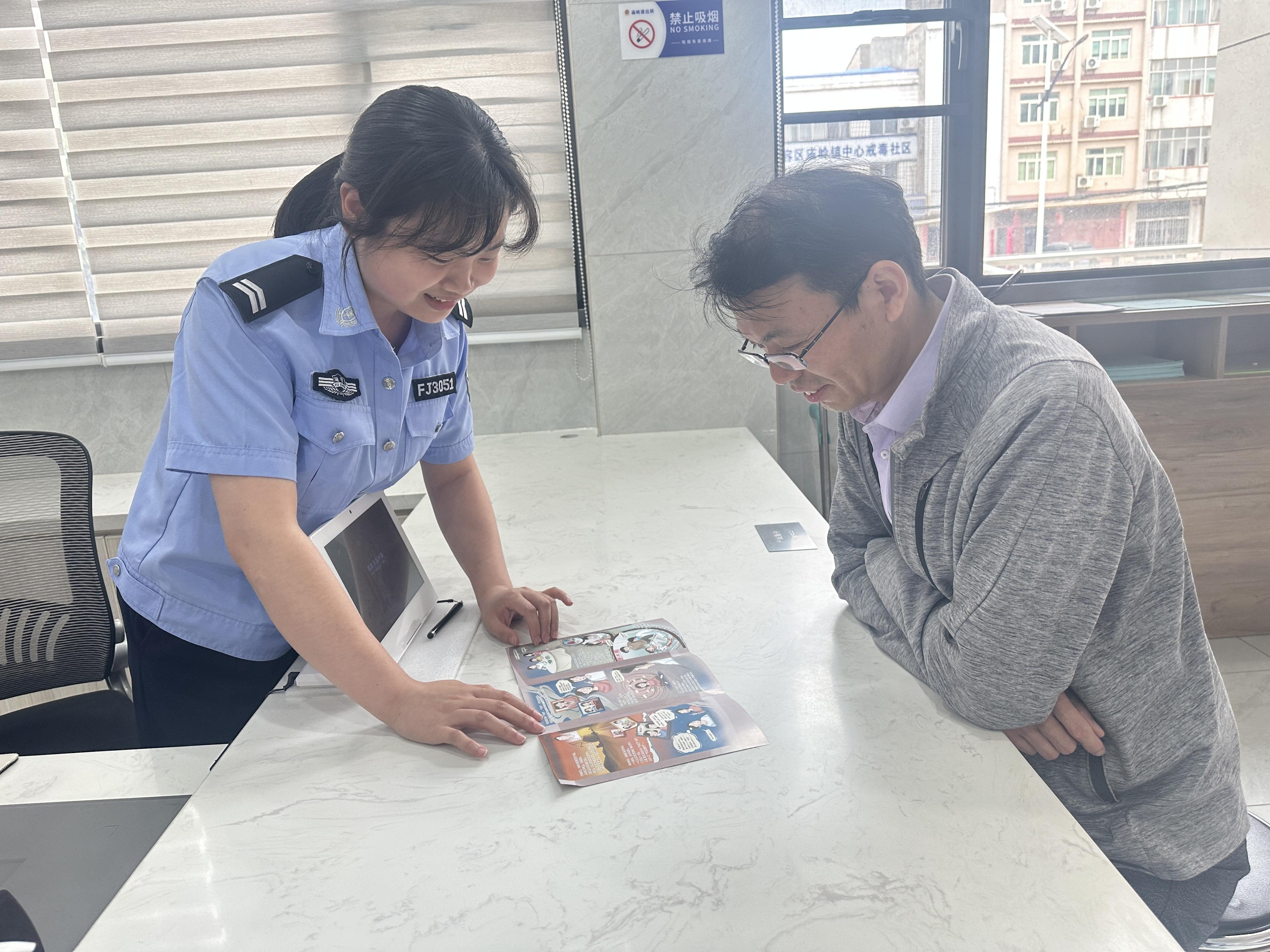 “这是反诈宣传手册,上面有好多新型的诈骗套路,您可以看看,避免上当受骗!”在庙岭派出所户籍窗口大厅,工作人员会耐心对前来办理业务的群众开展反诈知识宣传。
