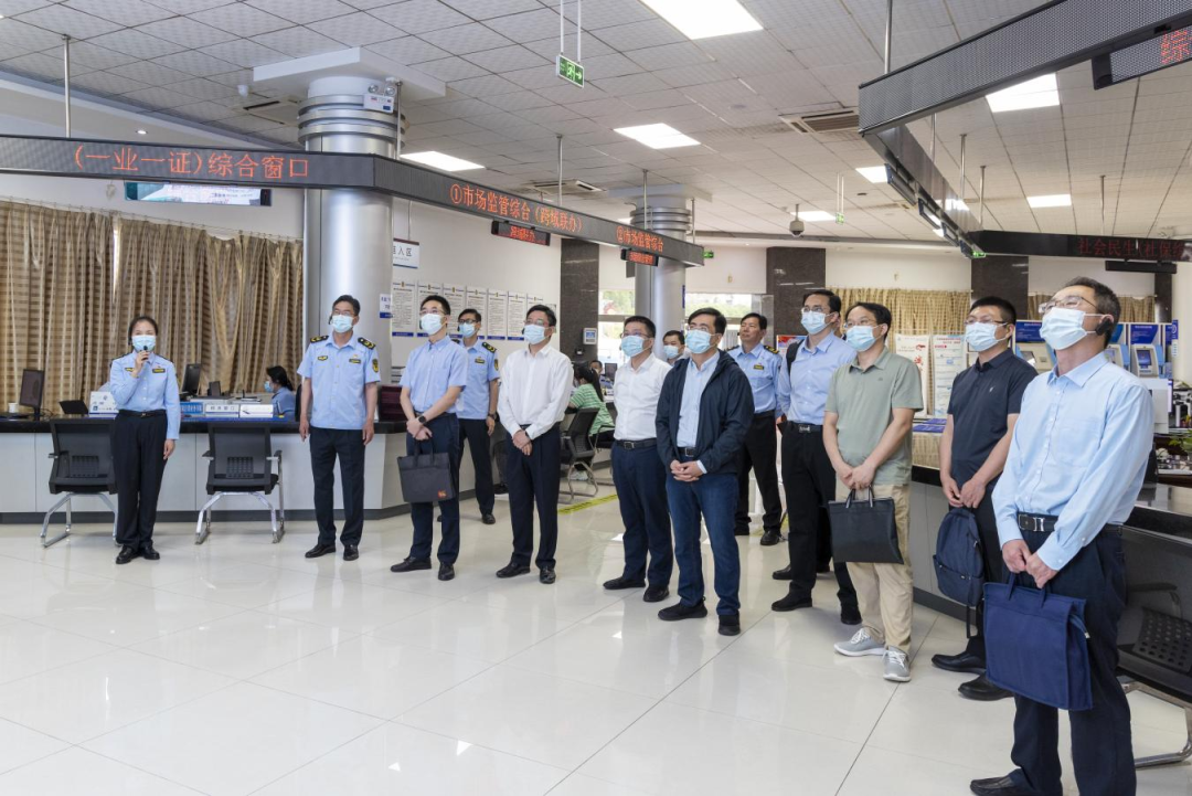 在葛店经开区政务服务中心,调研组一行就葛店经开区政务服务中心的办事区域布局、特色服务措施、未来发展及当地招商引资政策进行了深入了解。在市场准入服务窗口专题听取了市场监管部门对服务市场主体准入便利化、市场主体准营规范化、推动信用监管常态化、实施纾困解难靶向化四个方面内容的汇报,着重了解“一业一证”改革给企业带来的便利和异地企业迁入业务的办理流程,并与申请人亲切交谈,听取对窗口服务的意见建议等,对市场监管部门推进“一网通办”、实行不见面审批、免费邮寄营业执照等惠企便民举措给予了高度肯定。