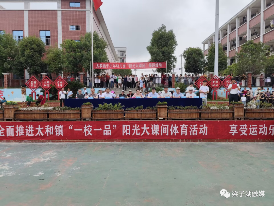 为响应“阳光体育运动”的号召,有效落实“双减”政策,提高学生身体素质和身心健康水平,丰富学生课余文化生活,增强学生体质,培养学生终身锻炼的良好习惯,6月1日上午,梁子湖区太和镇“阳光大课间”展评活动在太和中学举行,13所中小学幼儿园参加活动。