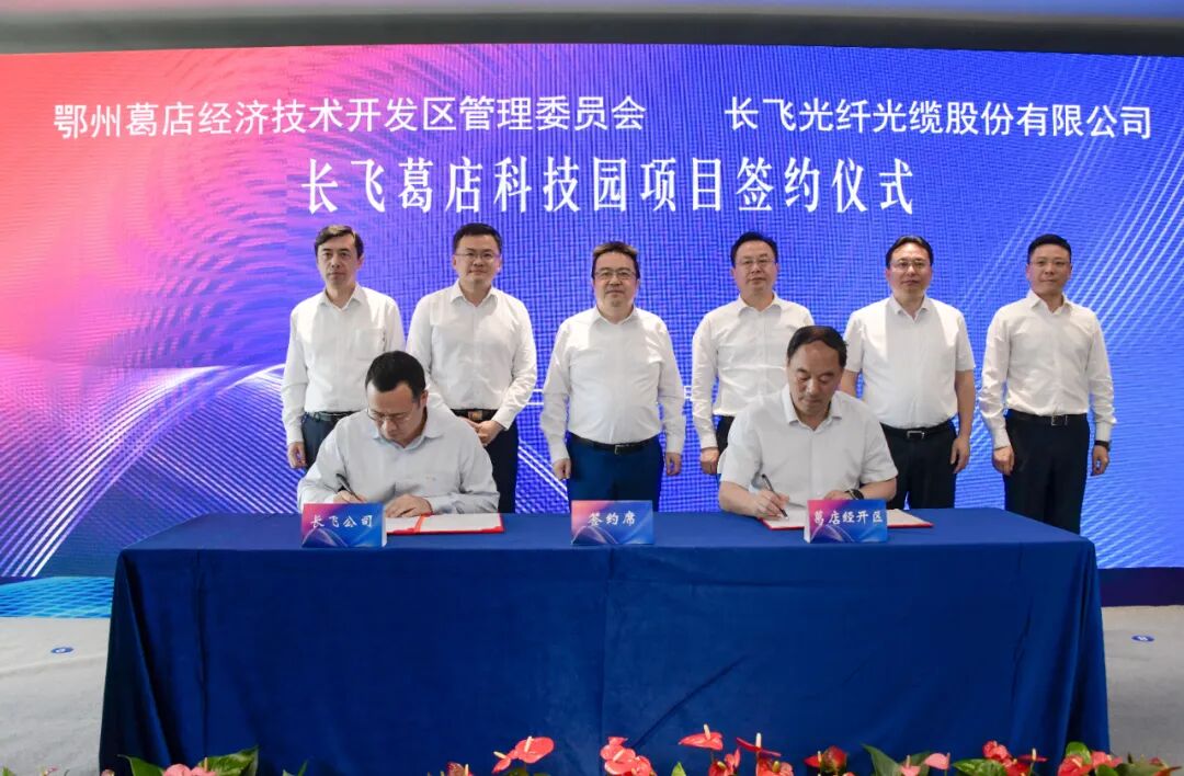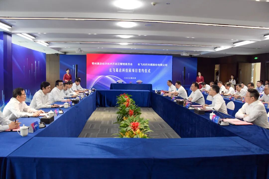 6月3日,长飞葛店科技园项目签约仪式在我市举行。市委书记孙兵,市委副书记、市长王玺玮,长飞光纤光缆股份有限公司执行董事兼总裁庄丹出席并见证项目签约。