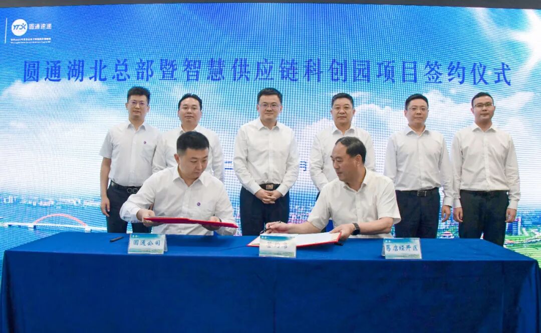 6月8日,圆通湖北总部暨智慧供应链科创园项目签约仪式在我市举行。市委副书记、市长王玺玮,圆通速递有限公司副总裁喻志贤出席并见证项目签约。