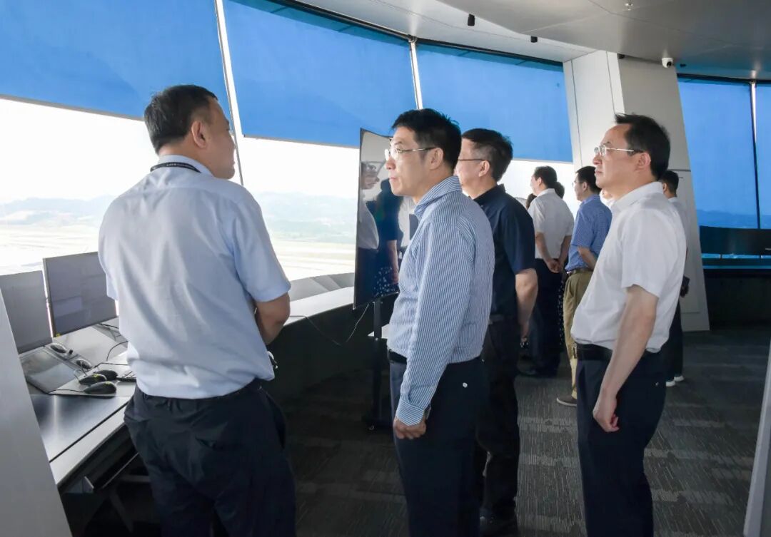 在花湖机场塔台,调研机场空中交通指挥能力建设