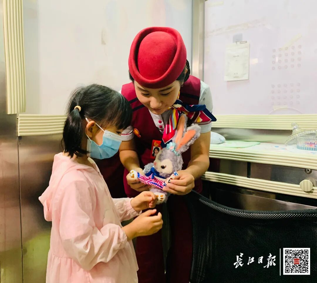 街道口站值班站长胡茜倩照顾小朋友。