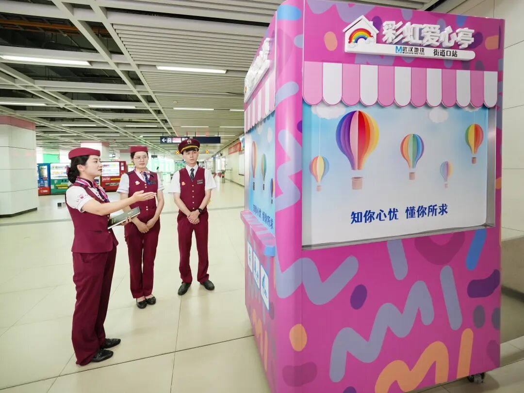 25日上午,长江日报记者来到街道口地铁站,值班站长胡茜倩正在为乘客介绍爱心亭。沈女士带女儿到省妇幼看完病,刚进地铁站,看见像糖果盒一样五彩缤纷的爱心亭,女儿拉着妈妈非要来看个究竟不可。