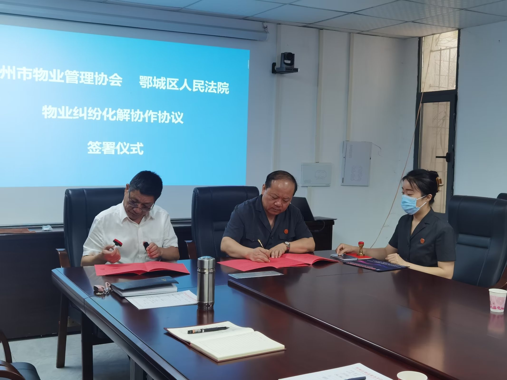鄂城区人民法院探索物业类纠纷调解新路径,将“共享法庭”开到行业调解组织,打造物业纠纷化解平台,化解物业服务纠纷,6月29日,鄂城区人民法院与鄂州市物业服务和管理协会在鄂州市物业管理纠纷调解中心“共享法庭”签署《物业纠纷化解协作协议》。