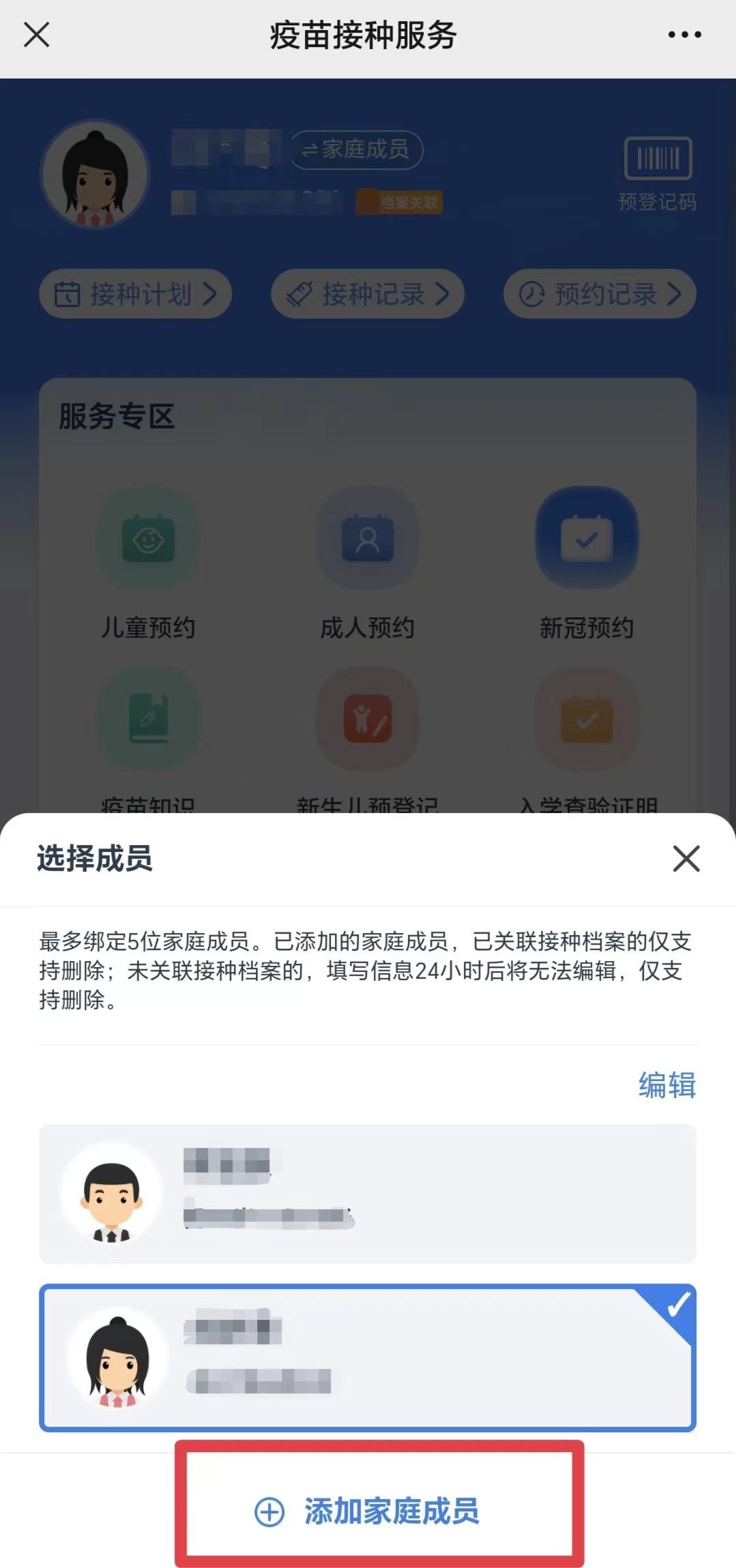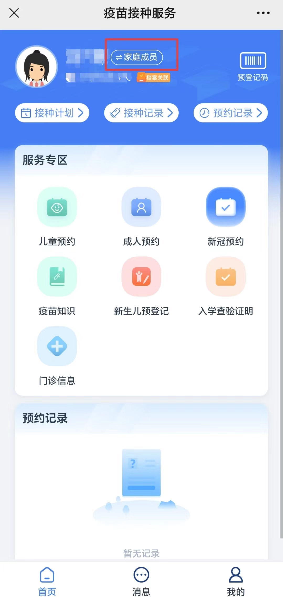 二、查询其他家庭成员接种信息该微信公众号也可以查询其他家庭成员的接种记录,但需要先绑定个案(最多绑定5位家庭成员)。具体步骤如下: