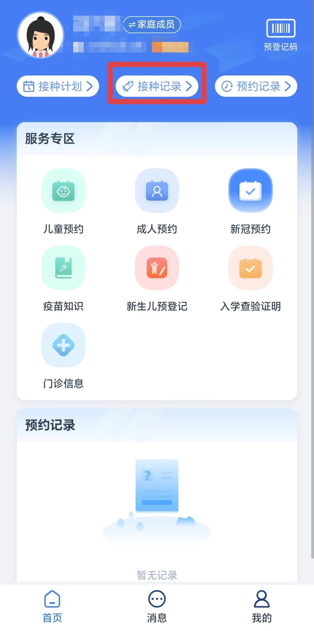 步骤3:点击“接种记录”,即可查询全部疫苗的接种记录,其中新冠疫苗还可以提供接种凭证。