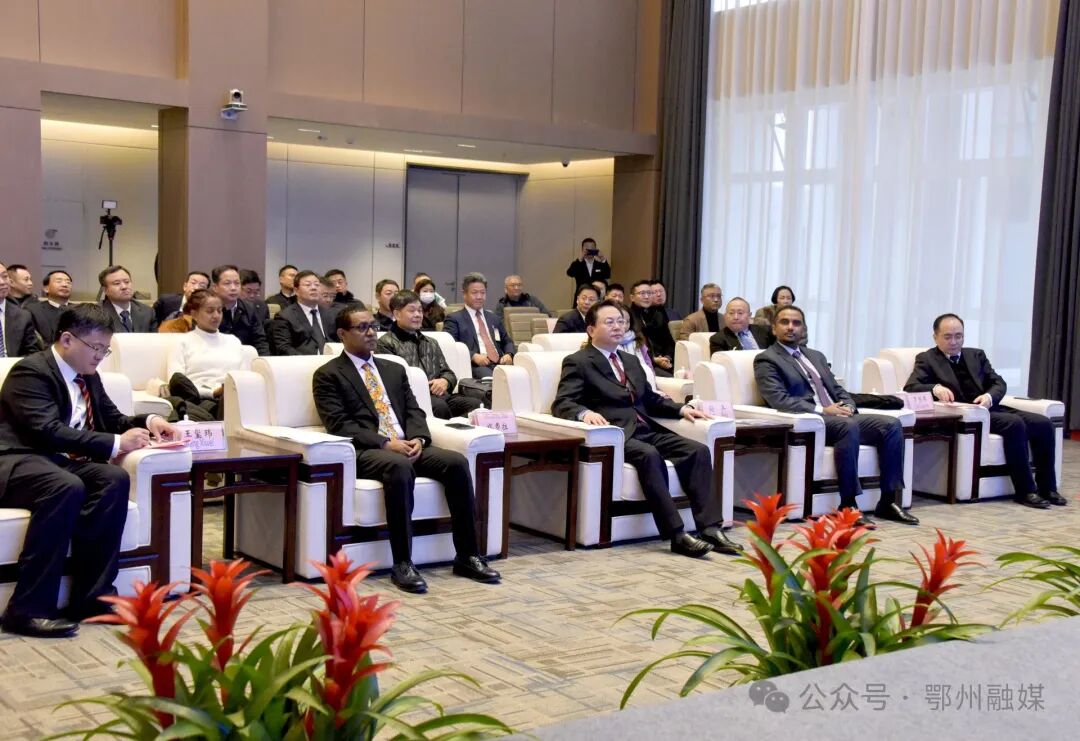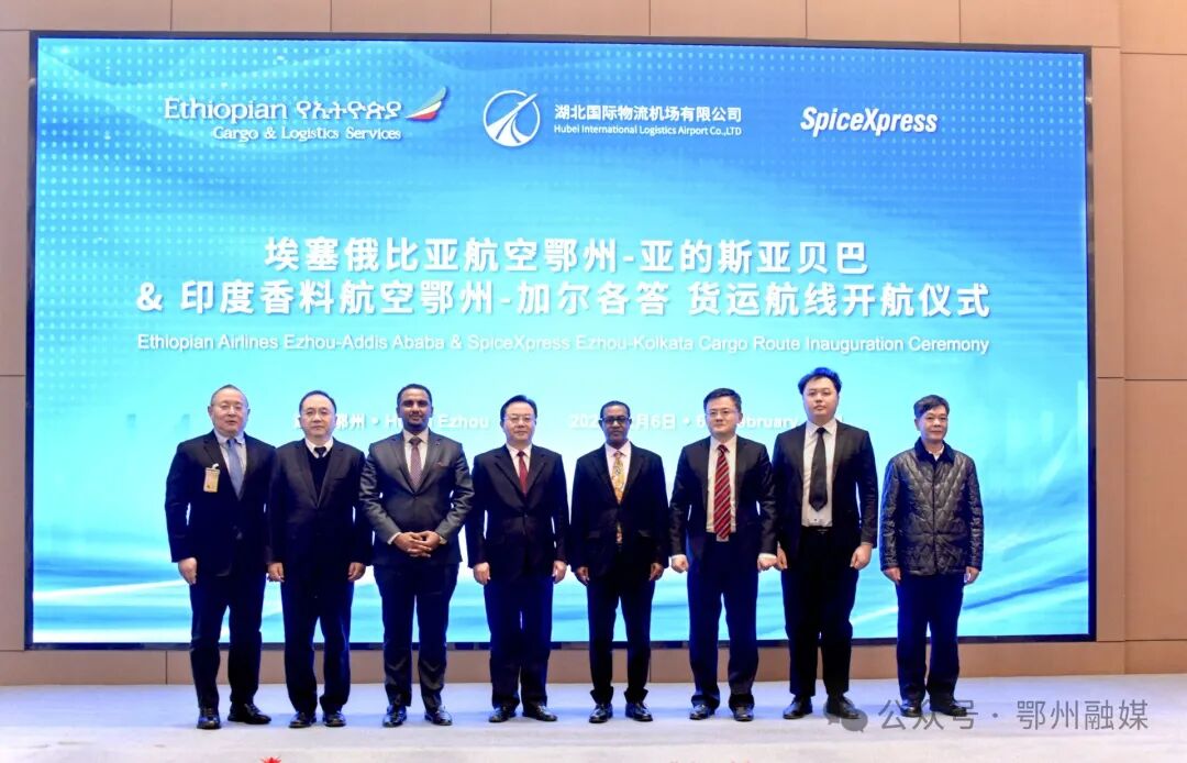 2月6日,“鄂州-亚的斯亚贝巴”、“鄂州-加尔各答”两条国际货运航线首航仪式在花湖机场国际酒店举行。埃塞俄比亚联邦民主共和国驻华特命全权大使塔费拉·德贝·伊马姆(Tefera Derbew Yimam),市委书记孙兵,市委副书记、市长王玺玮出席仪式。