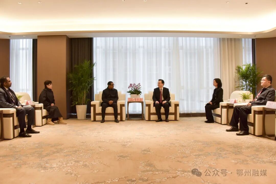 孙兵代表市委、市政府,对塔费拉大使一行的到访表示热烈欢迎,向长期以来关心和支持鄂州发展的各位领导、企业家表示衷心感谢。他说,在共建“一带一路”的框架下,埃塞俄比亚与中国开展了富有成果的合作,为推动两国关系发展作出了积极贡献。作为内陆地区“空中出海口”,鄂州花湖机场链接全国、辐射全球,在湖北加快建设全国构建新发展格局先行区中担当着重要使命。鄂州至亚的斯亚贝巴货运航线的开通,将为两国、两市人民扩大经贸往来、促进产业对接创造更好条件,实现互利共赢。