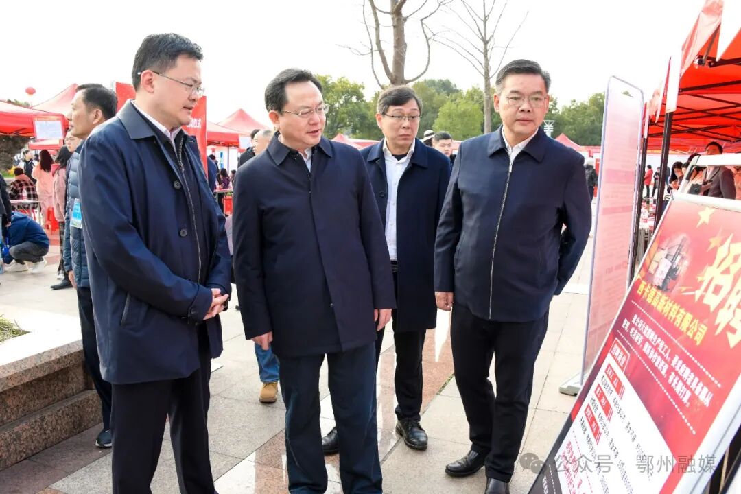启动仪式前,市委书记孙兵巡视招聘活动现场,走访招聘展台,了解企业经营状况和用工需求,询问求职者工作意愿和就业政策落实等情况。市委副书记、市长王玺玮出席并宣布鄂州市2024年“春风行动”正式启动。