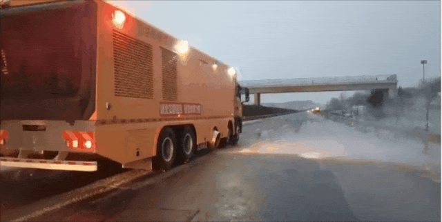 今日(2月21日上午),在京港澳高速大悟段湖北交投集团引进的除雪破冰“神器”初次亮相。