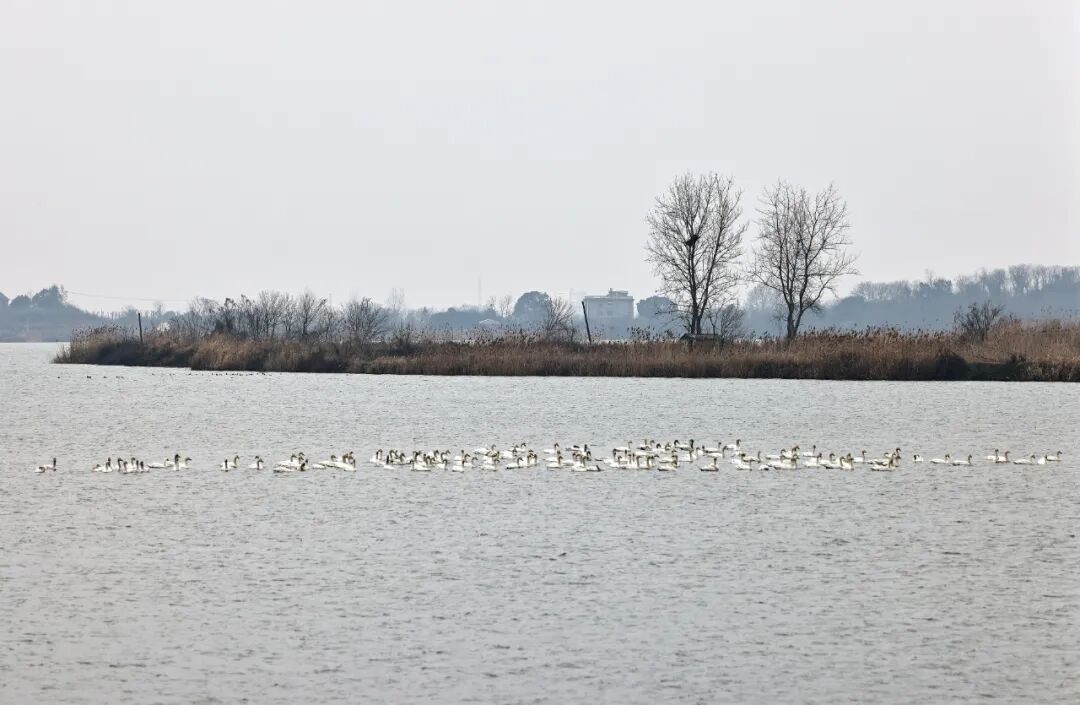 同时,在该湖面还监测到超百只的较大天鹅群,场面极其壮观。