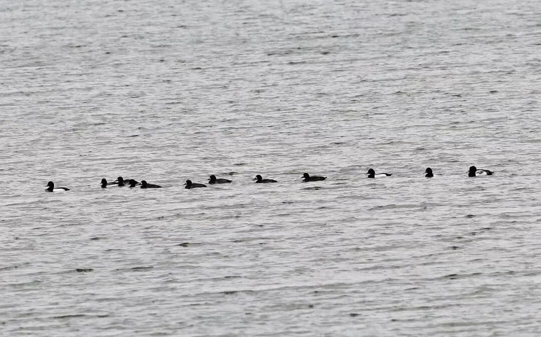 大年初五,当监测人员巡查至杜山镇三山湖时,发现罕见冬候鸟斑背潜鸭约三十只栖息在湖面上,自由自在地游玩、觅食,形态十分可爱,这也是我市十多年来再次监测到该物种。