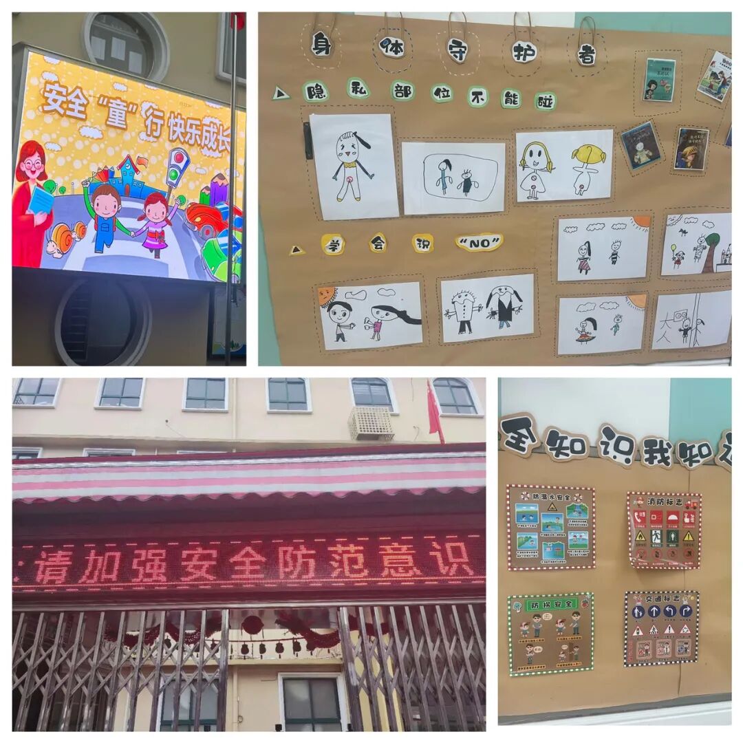 安全提醒处处现。在我们幼儿园里,可以随处看到各种安全提醒。各班教室主题墙等地方,都有老师、孩子们参与绘制的安全标识、安全插图,时刻提醒孩子们在园注意安全。大门口的溜底字幕、操场LED大屏上,每天滚动播放交通安全、消防安全、防溺水、防欺凌等宣传素材,向每一位路过的幼儿、教师宣传安全知识,防患于未然。