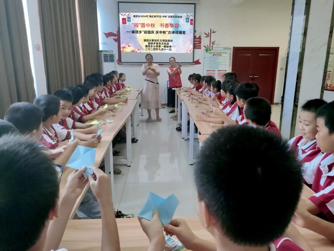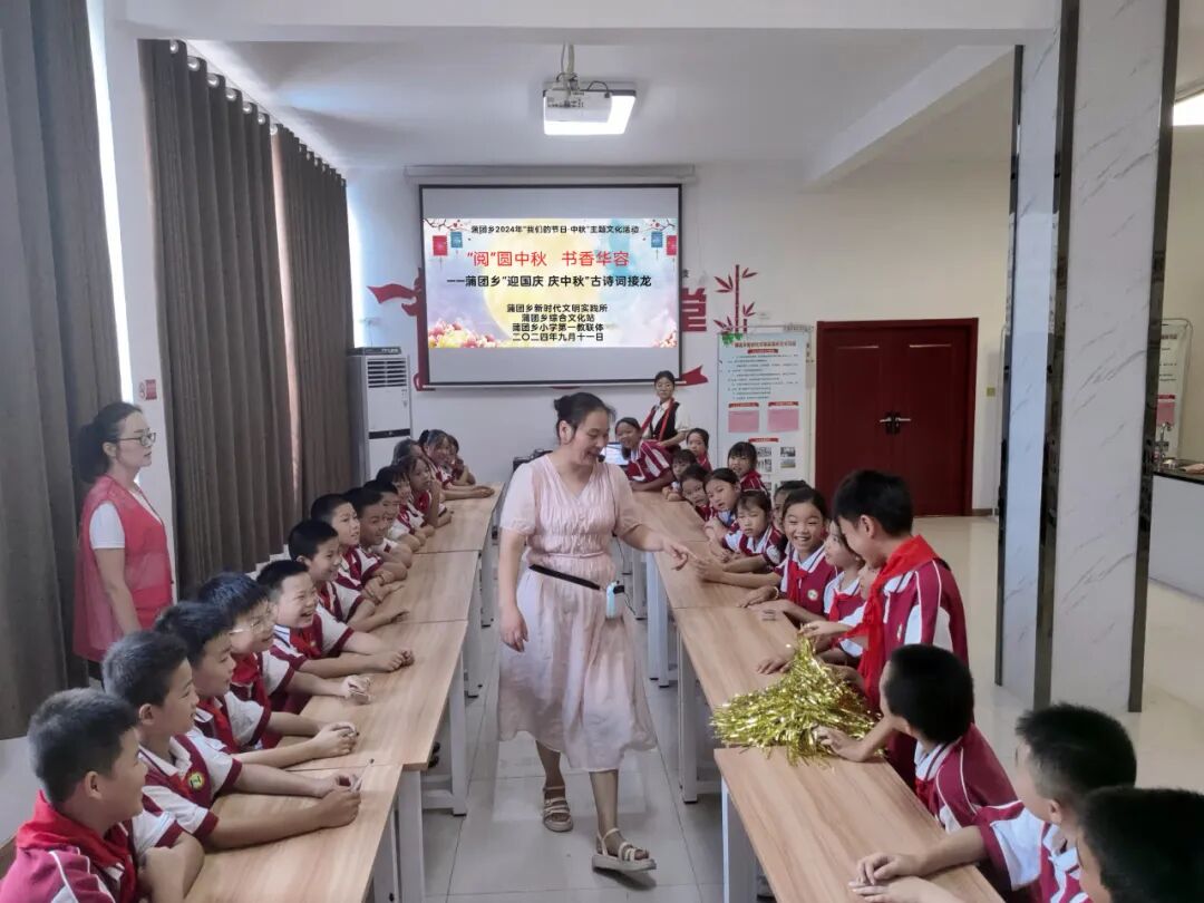 为进一步继承和弘扬中华优秀传统文化,丰富节日文化生活,9月11日上午,蒲团乡新时代文明实践所、乡综合文化站和乡小学第一教联体联合组织开展了“‘阅’圆中秋 书香华容”暨蒲团乡“迎国庆 庆中秋”古诗词接龙活动。36位小朋友欢聚一堂,度过了一个快乐而有意义的节日。