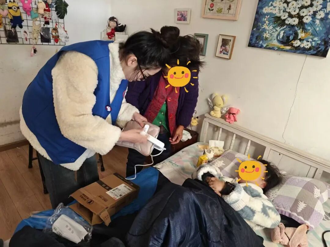 每到一户,社工都亲切地为服务对象将被褥仔细铺在床上,并告知热水袋的使用方法及注意事项,叮嘱他们在寒冷天气注意保暖和安全出行,确保辖区失能群体温暖平安过冬人。