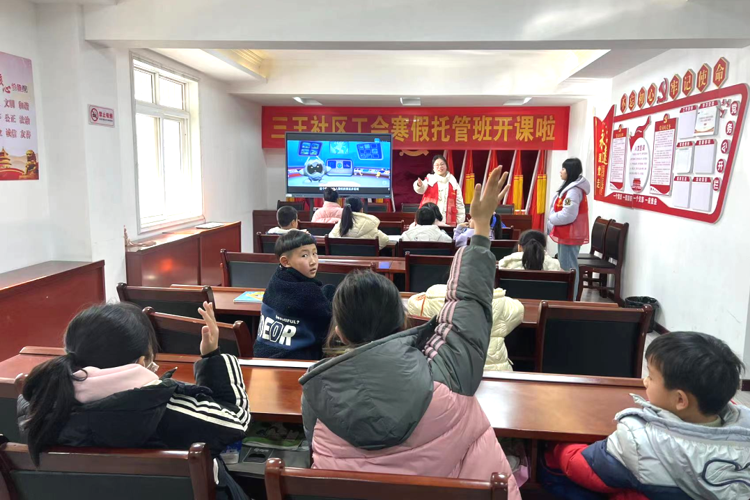 由三王社区工会联合会举办的寒假爱心托管班正式开课,志愿者老师们以“大手拉小手 安全一起走”为主题开讲第一课。