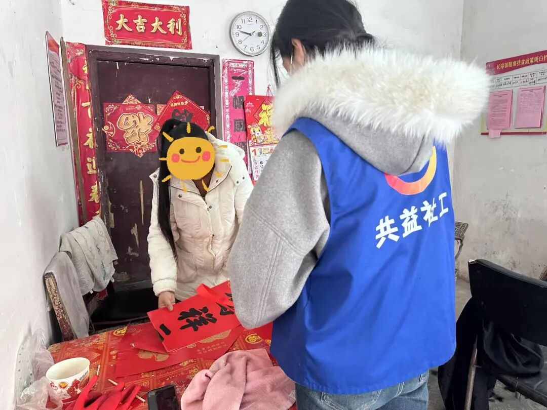 送春联的那一天,社工带着满满的关爱和祝福,逐户走访这些困境家庭。每到一处,都亲切地与他们交流,关心他们的生活状况和身体情况,耐心倾听他们的心声和需求,让他们感受到来自社会的尊重与关爱。