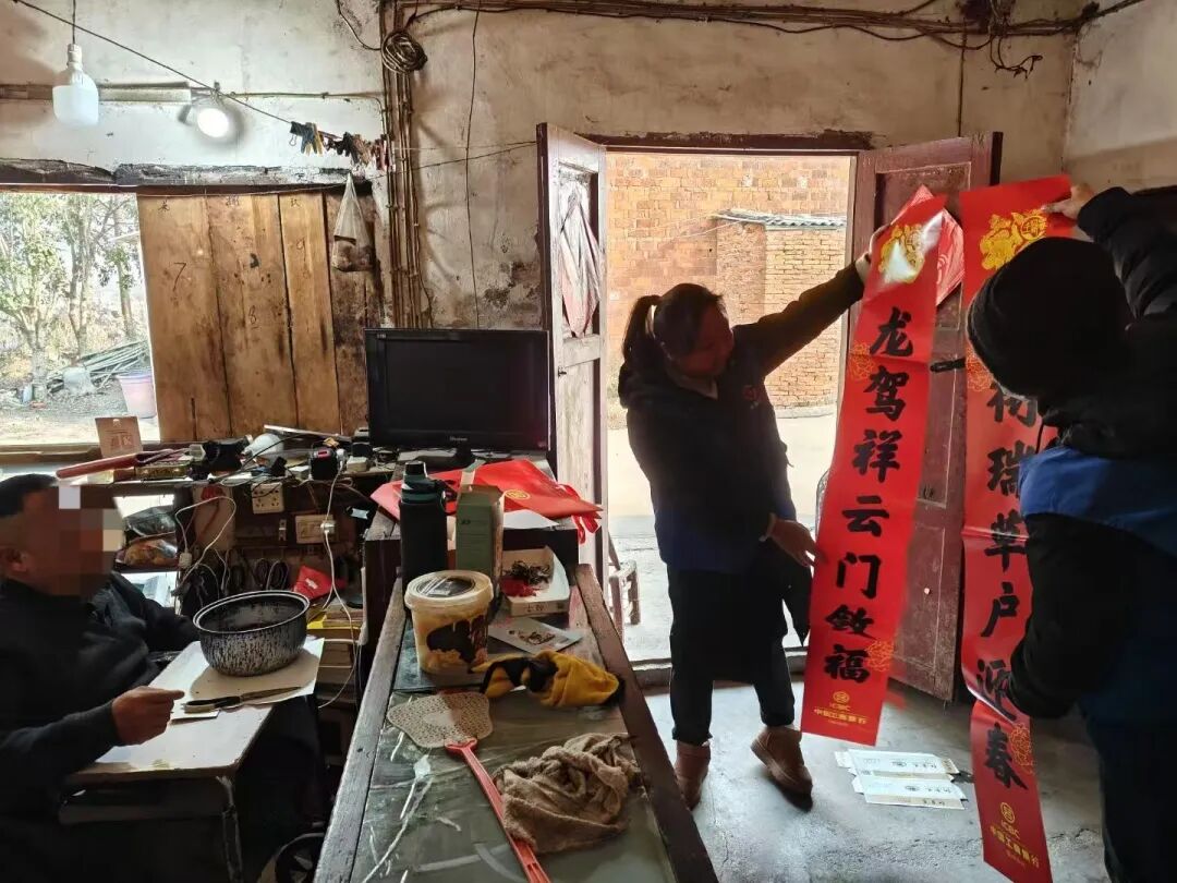 不仅如此,社工们还携手志愿者队伍,深入社区与乡村的各个角落,为那些行动不便的困难群众送上贴心的关怀 —— 上门送春联。每到一处,社工们都亲手将饱含深情祝福的春联递到困难群众手中,并致以真挚的节日问候。接过春联的群众们纷纷表达感激之情,这一暖心行动,切实让困难群众深深感受到了社会大家庭的温暖与关爱。