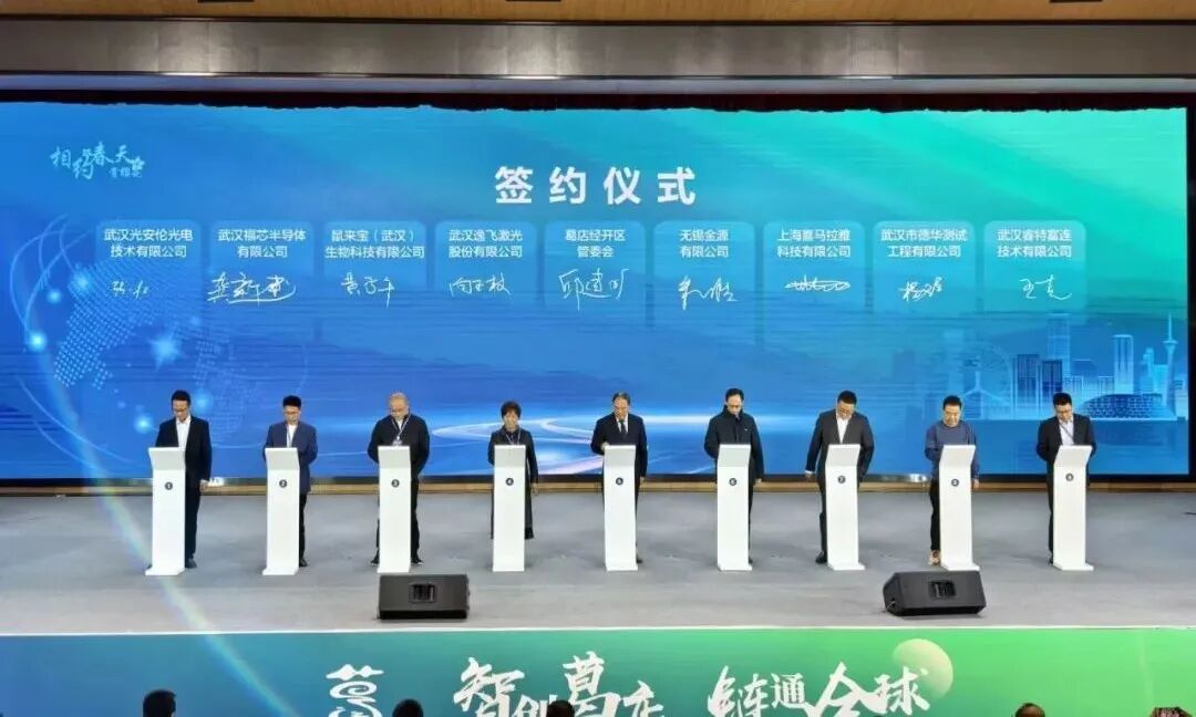 活动中,逸飞激光、无锡金源、鼠来宝生物、喜马拉雅科技、福芯半导体、德华测试工程、光安伦光电、武汉睿特富连8个项目正式落户,签约金额达102亿元,涵盖光电子信息、生物医药、智能制造、文化创意等领域。其中,喜马拉雅科技将在葛店建立华中总部,聚焦AI技术应用、内容运营等领域;逸飞激光将投资建设三期项目;鼠来宝生物将打造华中最大动物实验基地;无锡金源将瞄准长江存储产业链,落地半导体设备耗材项目。