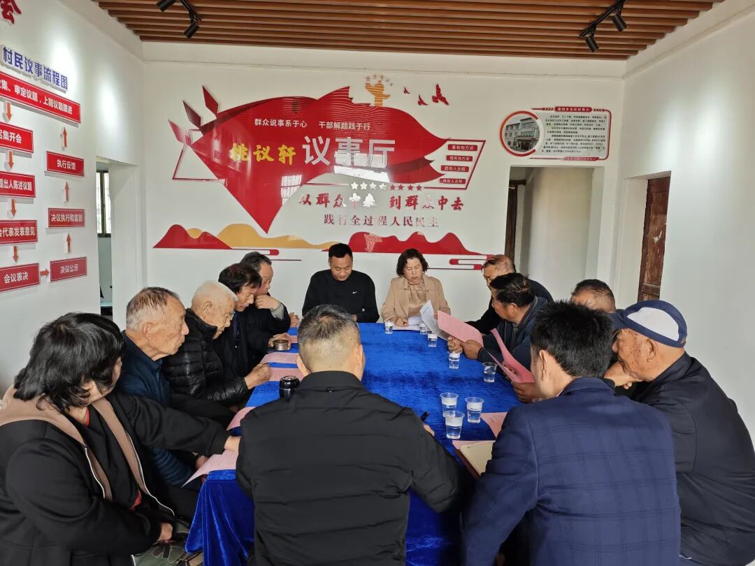 在瓜圻村桃议轩议事厅,与会代表重点学习了《政府工作报告》中关于"加强乡风文明建设,丰富农民文化生活,推进农村移风易俗"的重要论述。区乡人大代表、老党员、老干部和村民代表结合实际,围绕"大操大办、厚葬薄养"等突出问题展开深入讨论,形成了"党建引领、代表带头、群众参与"的工作思路。同时围绕婚丧嫁娶指导标准进行议事协商,明确了宴席规模标准等具体事项,会上还组建了由人大代表、老党员、老干部组成的工作队伍,将深入村组开展移风易俗宣传。