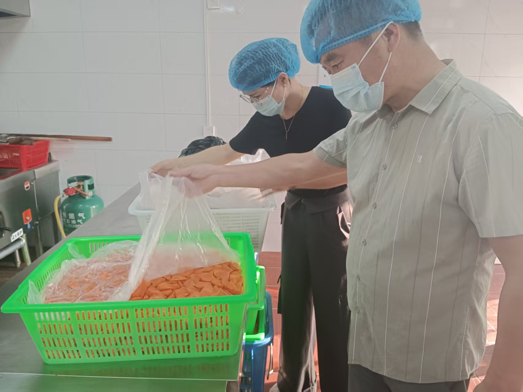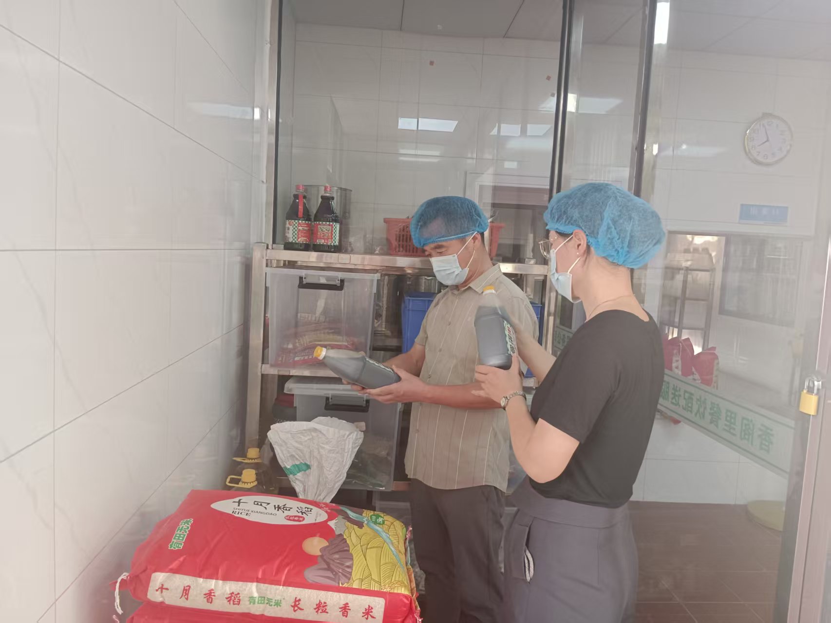 在“微食堂”公司负责人的陪同下,检查组一行严格遵循食品安全生产规范,深入食品加工生产的核心区域,仔细查看了原料仓库、蔬菜肉类加工间、烹饪车间、分餐包装线以及餐具消毒间等关键环节。