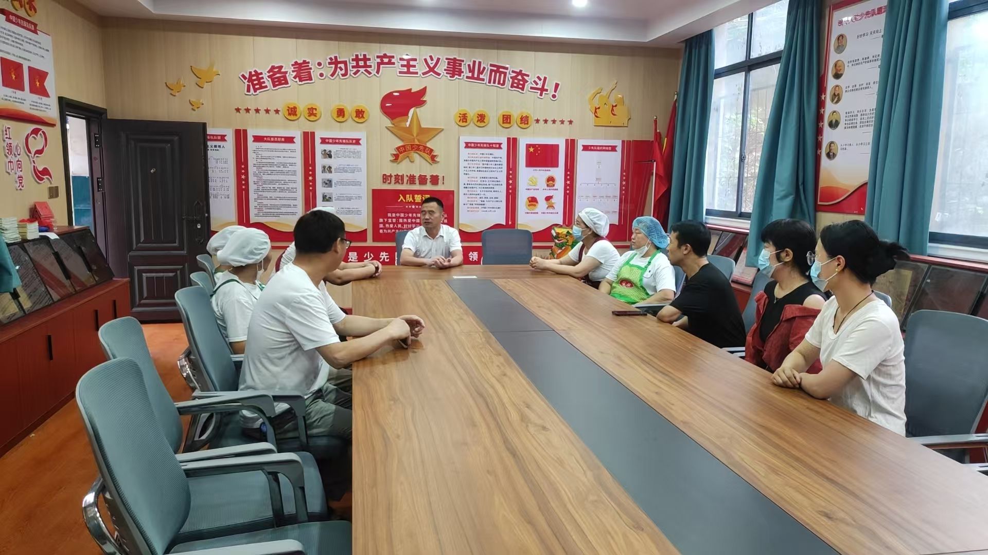 在原料仓库,刘海峰校长重点关注了米、面、油等大宗食品的采购渠道与保质期,随机抽查了进货台账,确保源头可溯、质量可控。走进烹饪区,检查组观察了厨师的实际操作流程与卫生状况,并就菜品烹饪的用油、用盐标准与公司管理人员进行了深入交流,强调学生餐必须坚持“低盐、少油、营养均衡”原则。