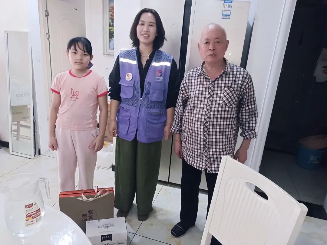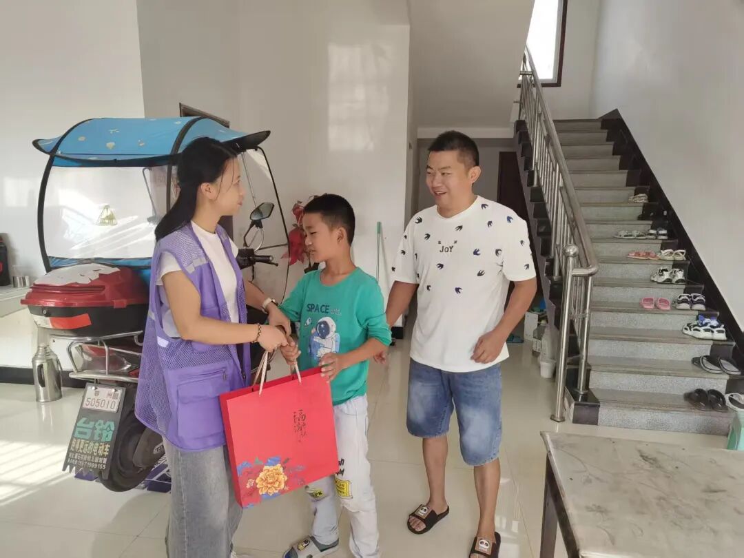 古楼街道北门社区和志愿者一同为困难家庭儿童送去学习用品和节日礼物。