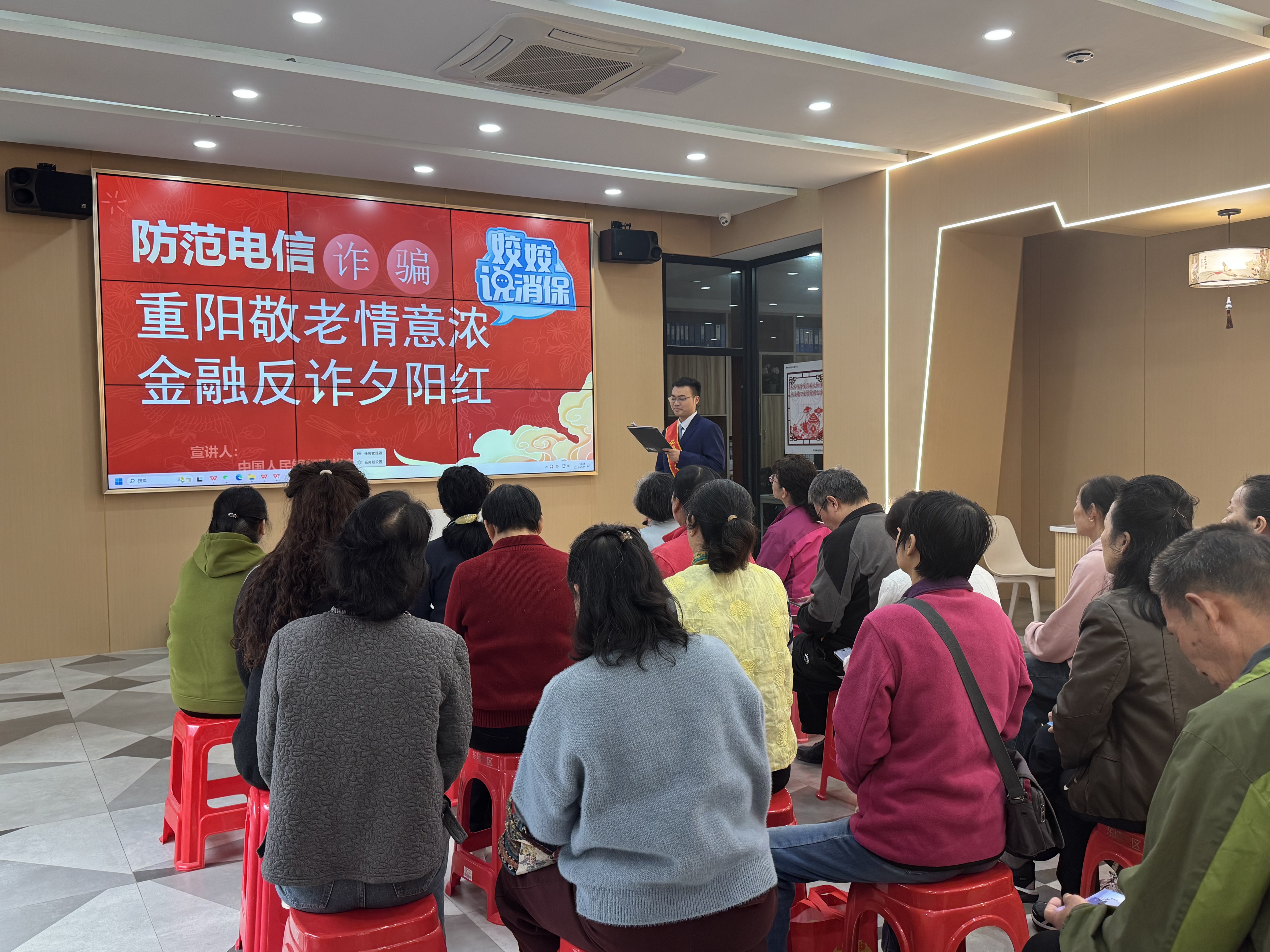 活动中,人行鄂州市分行工作人员以播放宣传视频、发放宣传折页、举办宣传微课堂等形式,面向人行鄂州市分行退休老干部和社区老年群体宣讲防范电信网络诈骗、反假货币、反洗钱、防范“征信修复”陷阱、国债兑付等金融知识及老年人防摔知识,提升大家的金融素养和防诈意识。