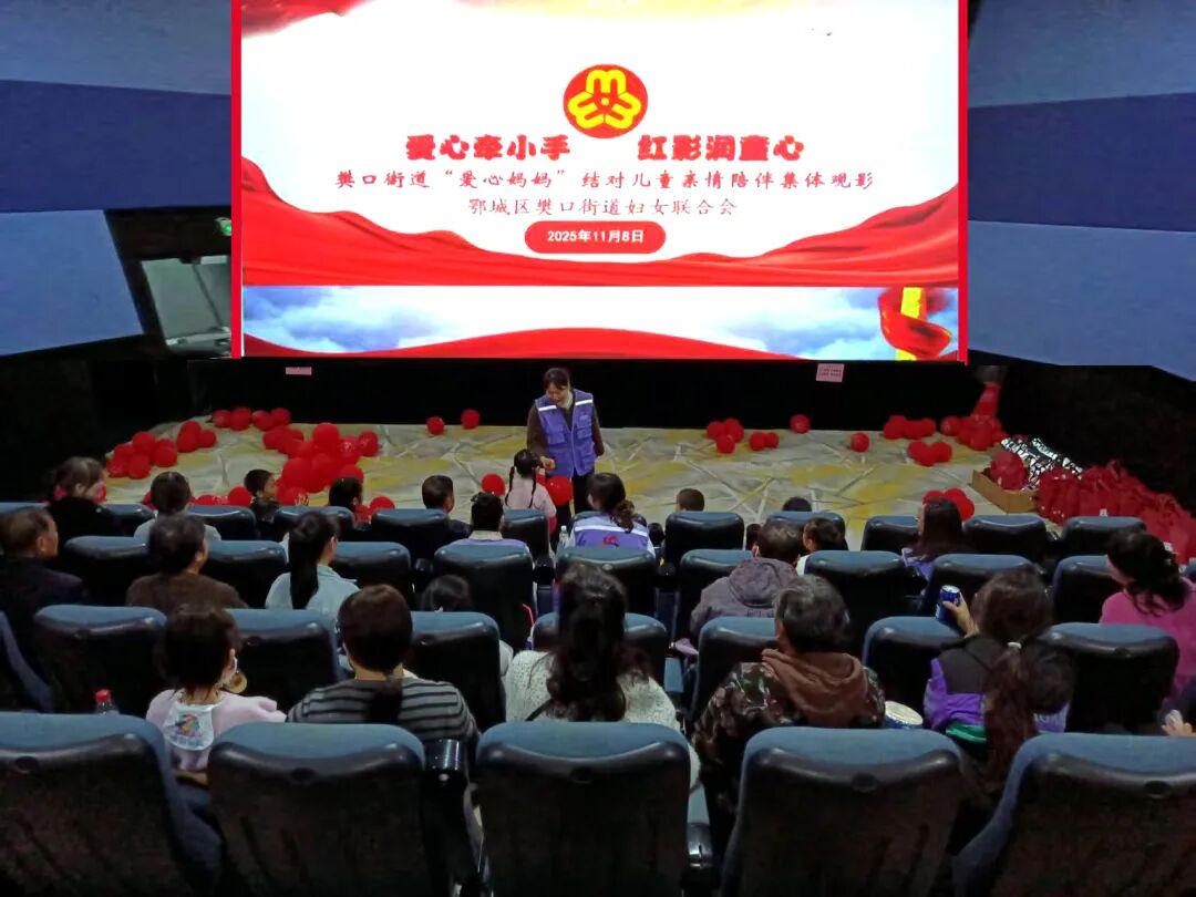 为深入推进“爱心妈妈”结对关爱行动走深走实,切实丰富困境儿童精神文化生活,11月8日,樊口街道妇联组织“爱心牵小手 红影润童心”公益观影活动,全街妇联干部、“爱心妈妈”、结对“三类”困境儿童及儿童家长80余人齐聚影院,在光影流转中传承红色基因,在温情陪伴中传递暖心关怀,为孩子们成长之路播撒爱与希望的种子。