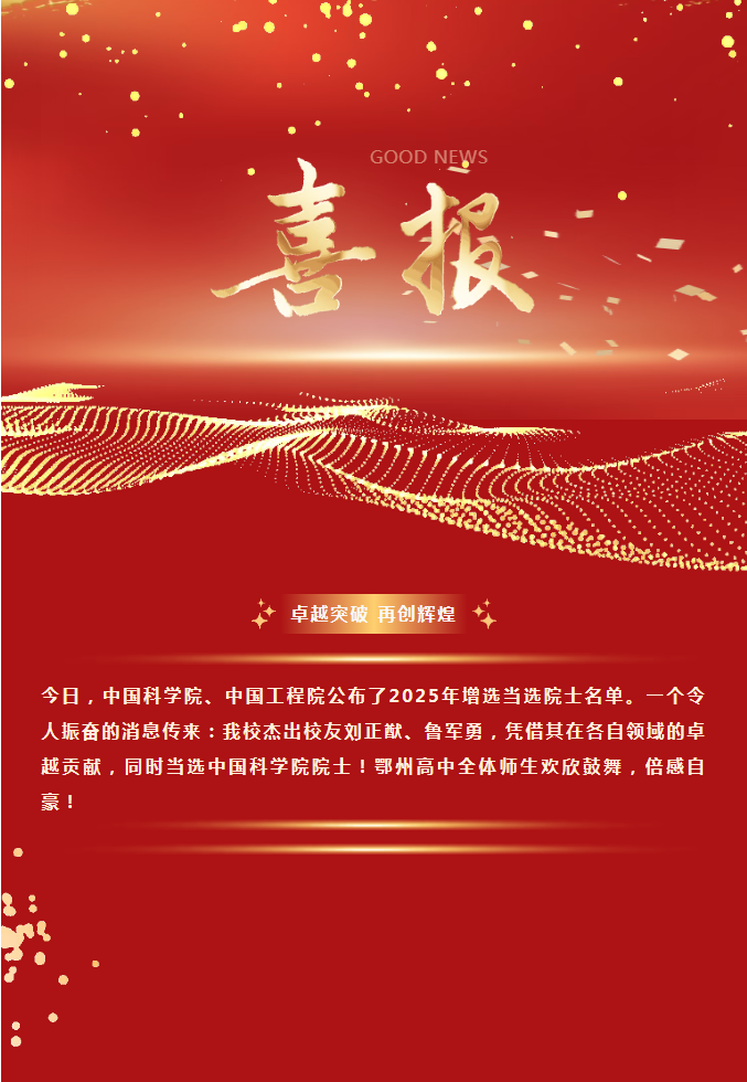 鄂州高中又传喜报!两校友同时当选中国科学院院士