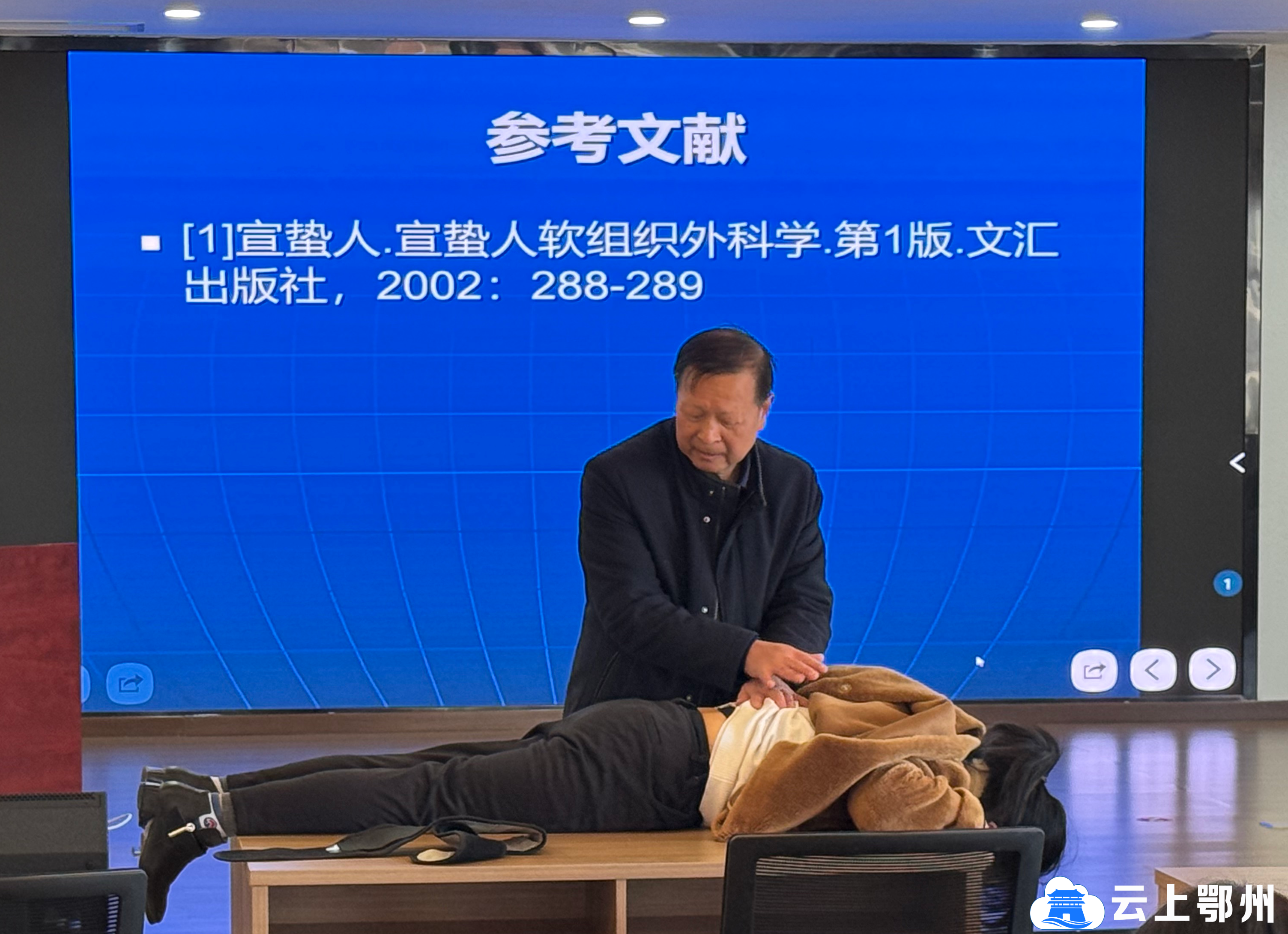 本次培训特邀湖北省中医院骨伤诊疗中心何承建教授、湖北省中西医结合医院李停教授、鄂州市中心医院金福兴教授和朱庆伟教授、鄂州市中医医院王学军教授和王学峰教授,他们分享了颈肩腰腿痛诊疗要点、基层常见病多发病的中医药防治以及针灸、推拿、拔罐、刮痧、耳穴压豆等多项易于掌握且疗效确切的中医适宜技术,内容聚焦基层实际需求,涵盖常见疾病诊疗规范以及医患沟通技巧等多个关键领域,并通过理论授课、案例分析与实践技能指导相结合的方式,为参训学员进行了系统性的讲解与辅导,确保参训学员能够听得懂、学得会、用得上。学员们学习热情高涨,积极参与互动,纷纷表示培训内容实用性强,对提升日常诊疗工作的规范化、科学化水平具有重要指导意义。