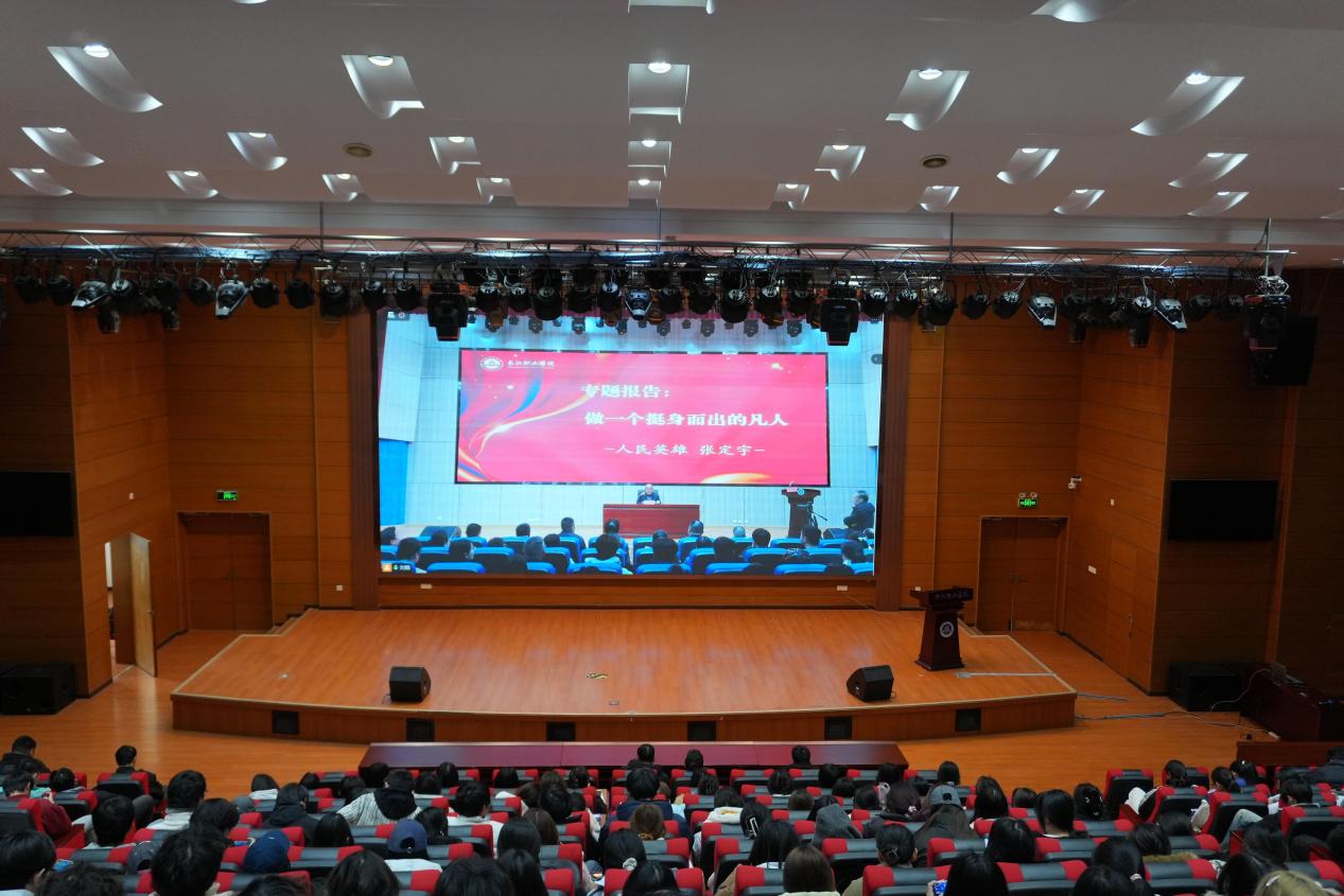 12月25日下午,长江职业学院学术报告厅内气氛庄重而热烈。“人民英雄”国家荣誉称号获得者、湖北江夏实验室主任张定宇为该校师生带来一场题为《做一个挺身而出的凡人》的专题报告。他以真挚朴素的语言、感人至深的经历,深刻诠释了平凡岗位上的使命担当与匠心精神,为职业教育学子点亮了技能报国的人生航标。